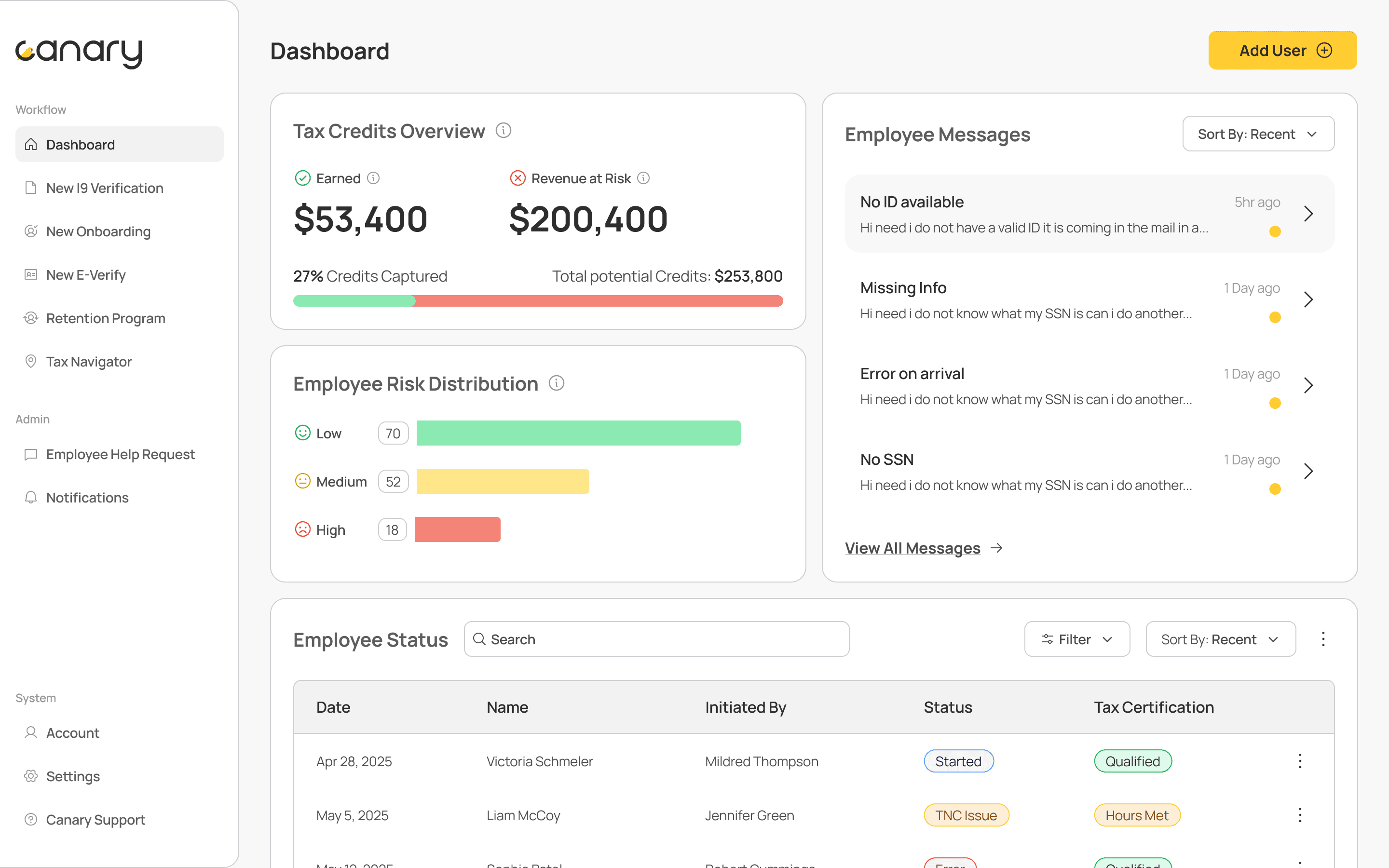 Canary combines AI-powered analytics, tax credit automation, and digital onboarding to make hiring more efficient and more profitable.