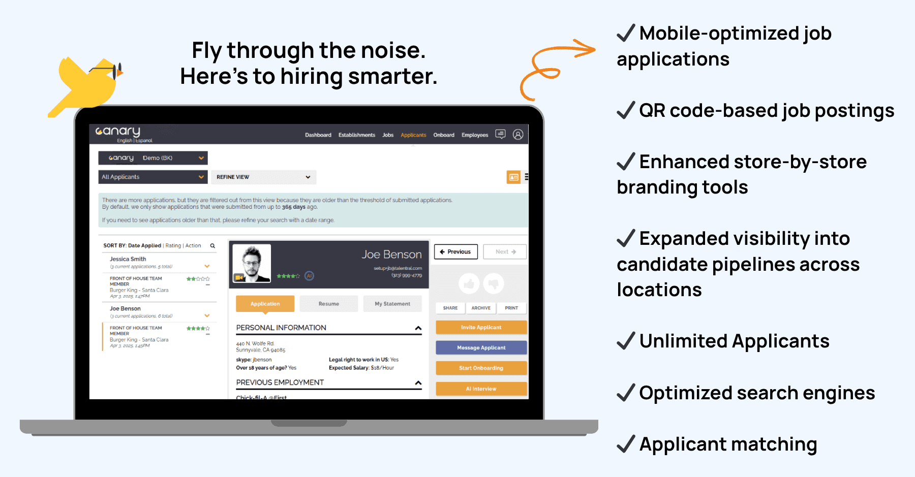 ZippyApp’s intuitive mobile workflows, location-specific branding, and robust store-level visibility complement Canary’s deep capabilities in compliance automation, hiring analytics, and incentive capture. ZippyApp customers will continue to receive dedicated support, while Canary clients will gain access to an expanded suite of ATS features—including mobile-optimized job applications, QR-based sourcing, and multi-location job visibility.